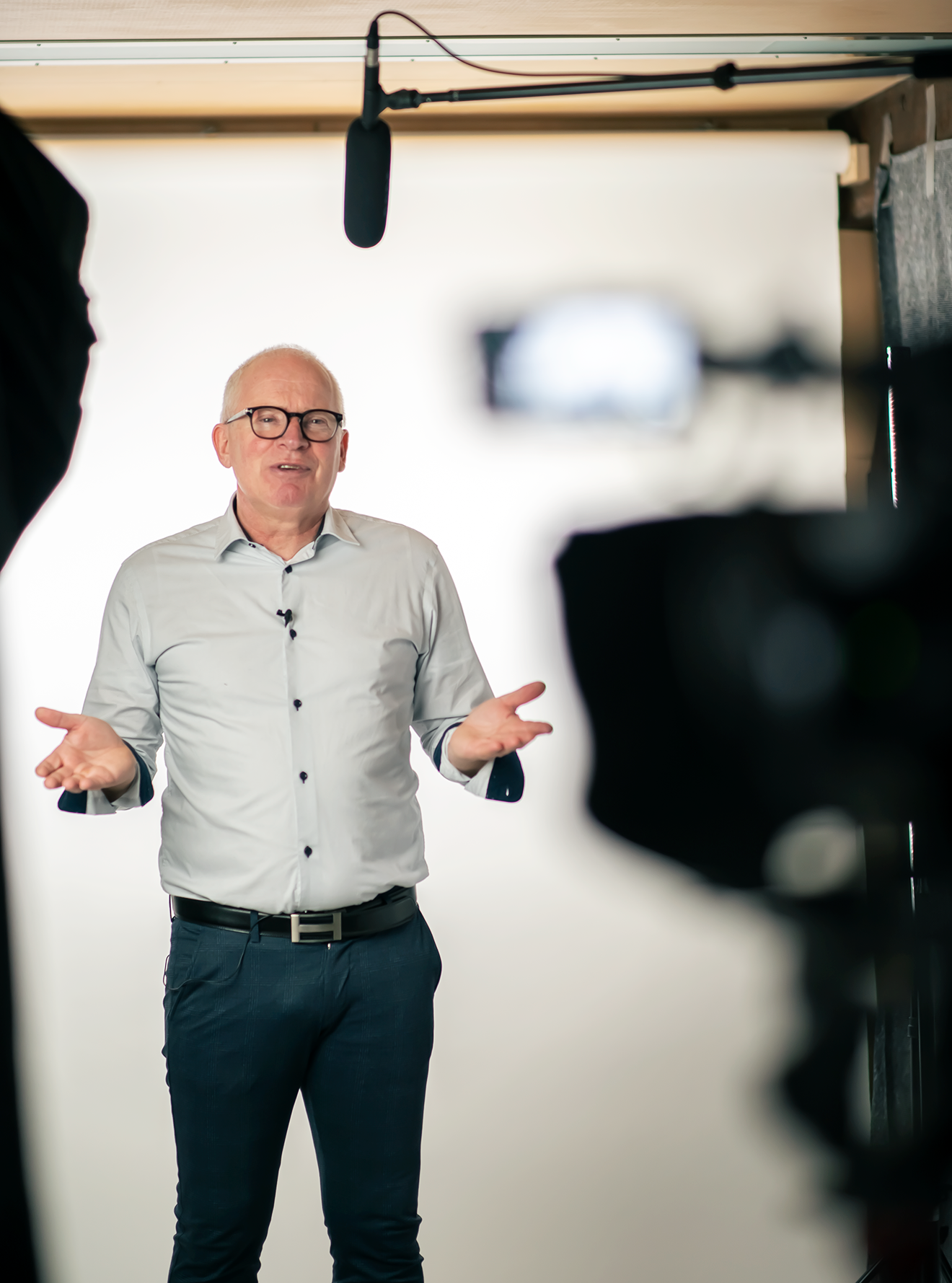 Fra et kamera perspektiv, valgte vi å bruke Sony FS7. Dette kameraet benyttet vi også som kilde til lyden (lyden ble tatt opp ved hjelp av mikrofon, koblet til kamera). Vi koblet kamera til en teleprompter (også kjent som autocue), slik at presentatør kunne lese manuset under filming. Dette er supert dersom man ønsker at presentatøren skal se inn i kamera.